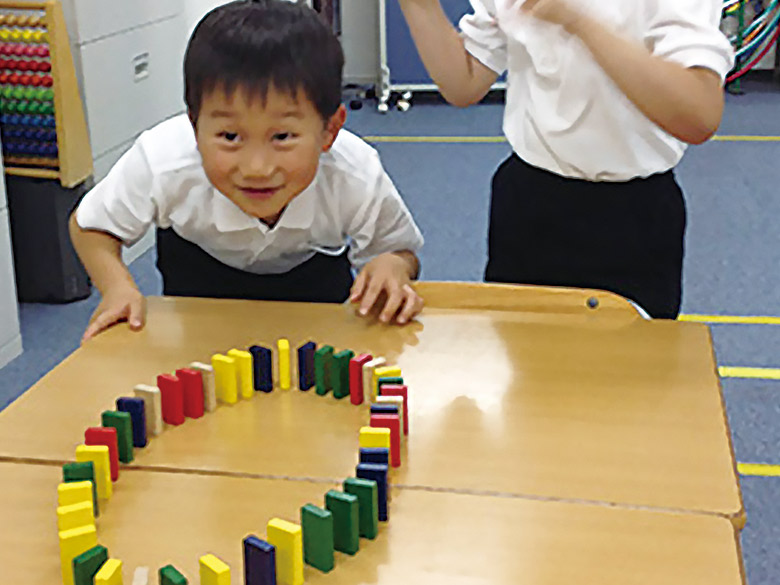 立教小学校受験コース(学習院初等科対応)はお話を聞く姿勢、きちんと自分の考えを相手に伝える力を大切にしていきます。多くの絵本の読み聞かせの中でお話に興味を持たせ、自分の思いを伝えられるようにします。個別テスト対策もしっかり行い、パターンブロック、積み木などの構成やオセロなどの遊びの中でルールや法則を理解させます。リズム体操も毎回取り入れ、楽しい中にもけじめをつけるようにします。